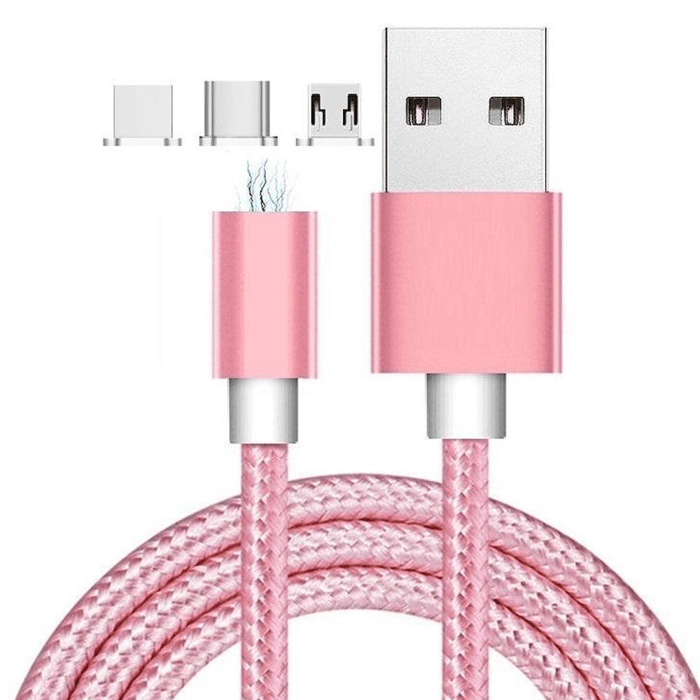 3-in-1 Magnetisch Kabel – Lightning, MicroUSB, Type-C – roze