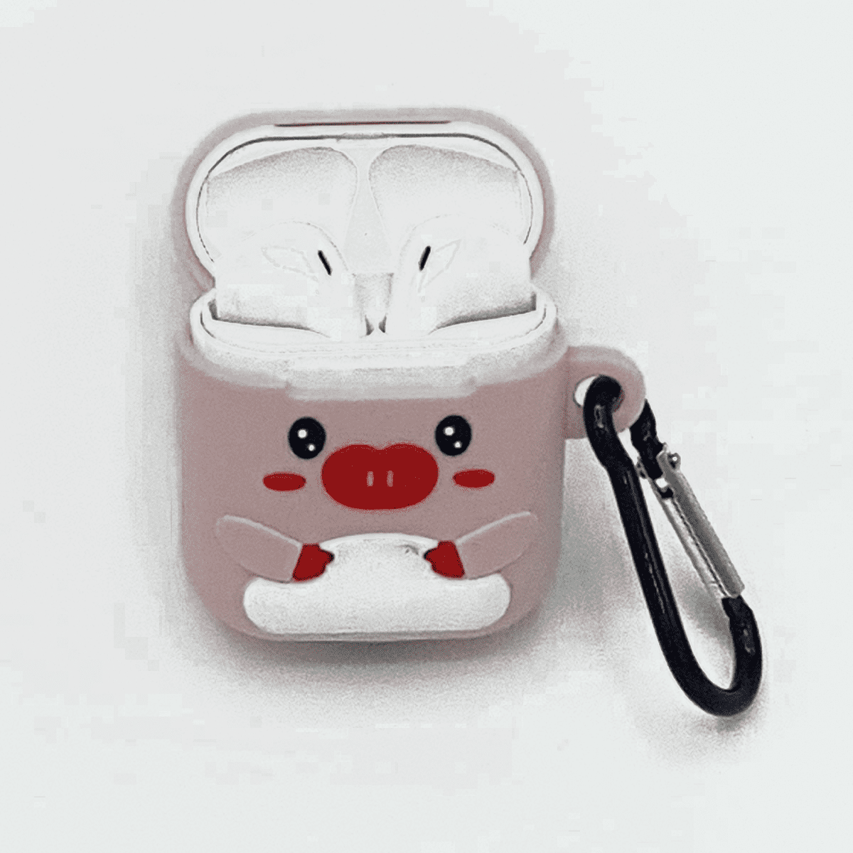 Cartoon Airpods Silicone Case Cover Hoesje voor Apple Airpods – pretty piggy – met karabijn