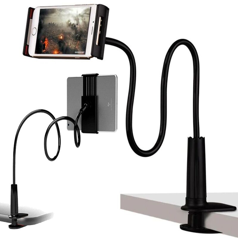Flexibele zwanenhals smartphone / tablethouder – zwart – 70 cm om gemakkelijk een telefoon, tablet of e-bookreader te bevestigen