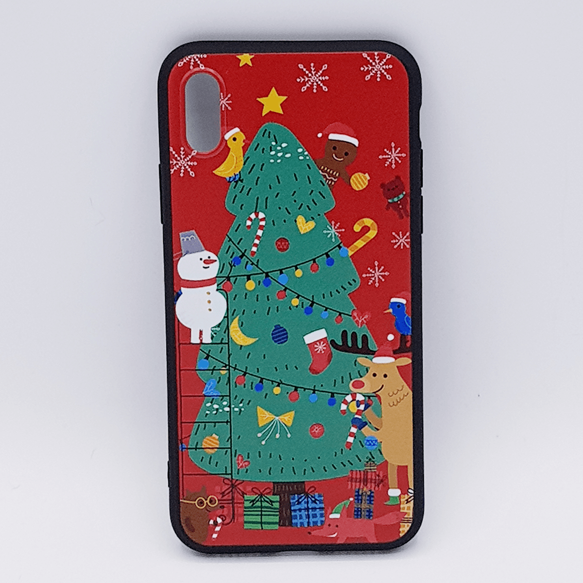 Het TPU- materiaal van deze Kerst iPhone X case/cover is duurzaam ontwikkeld en heeft een unieke print met een tafereel van de kerstboom optuigen op een rode achtergrond