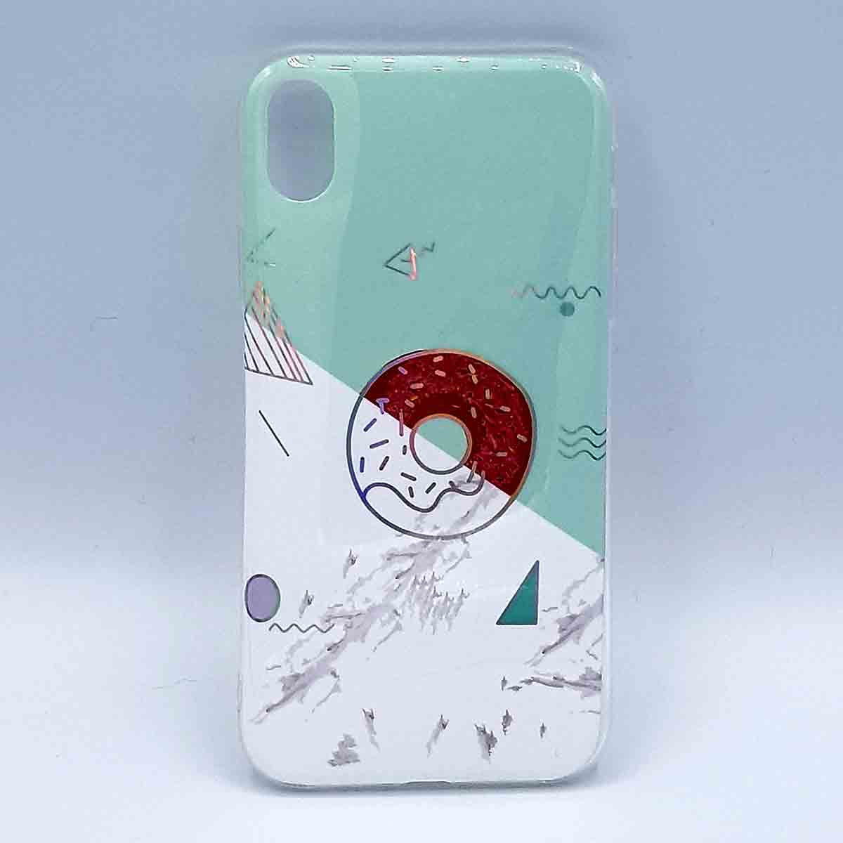 Het TPU- materiaal van deze iPhone XR case/cover is duurzaam ontwikkeld en heeft een unieke print van wit marmer met groen en een donut – unieke glossy look