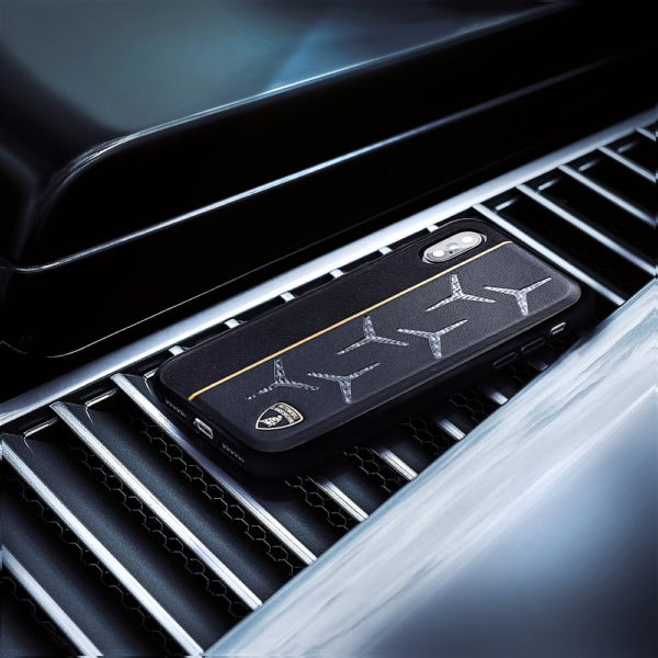 Originele lederen Lamborghini case Lamborghini AVENTADOR D12 LB-TPUPCIPXSM-AV/D12-OE iPhone Xs Max zwart
