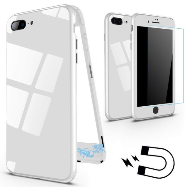 voor de iPhone 6/ 6S – wit – Deze Ultraslanke magnetische behuizing is gemaakt van een 2 in 1 bumpercase en 9H gehard glas op de achterkant.