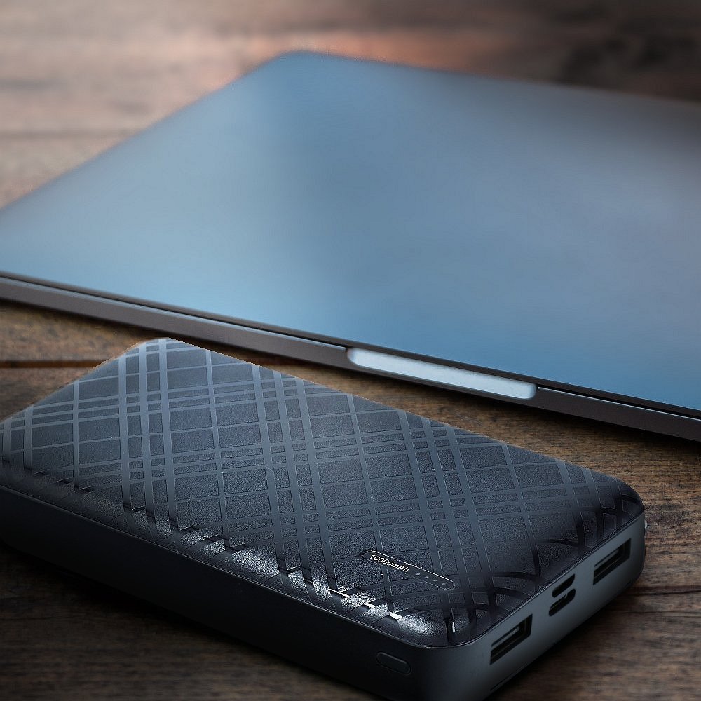 Een moderne powerbank met een dubbele USB-poort voor het sneller opladen van meer apparaten. Hiermee kunt u maximaal twee apparaten tegelijk opladen.