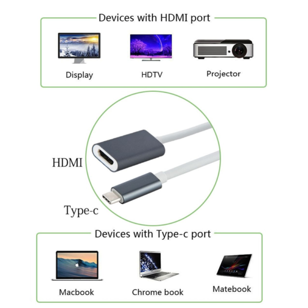 De Type-C naar HDMI Adapter werkt met apparaten die voorzien zijn van een Thunderbolt™ 3 USB-C poort met DP Alt-modus. Voorbeelden van apparaten zijn onder andere MacBook, ChromeBook Pixel, Samsung Galaxy Note S/S8/S8 Plus, MacBook Pro, iMac (2016/2017) en Huawei Mate 10/Mate 10 Pro. Het product aansluiten is gemakkelijk, namelijk plug and play. Er is geen stuurprogramma nodig en je kunt een rechtstreekse verbinding maken tussen een USB-C laptop/smartphone en een met HDMI 2.0 ondersteunende monitor, HDTV of projector.