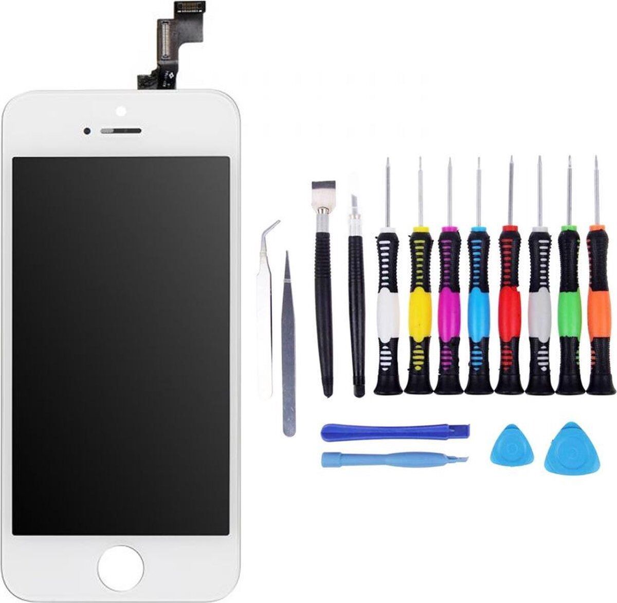 Voor iPhone 5s Scherm wit – met 16 delig proffesionele reparatiekit om zelf in stijl je scherm te repareren en kosten te besparen